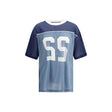 The technical mesh T-shirt by Moschino from the Spring/Summer 2026 collection features a panelled design with a reversed number 22 print placed on the front. Designed with a crew neck, wide short sleeves and dropped shoulders, it offers a relaxed and contemporary silhouette. The lightweight, breathable fabric enhances its sporty and graphic appeal, making it a distinctive piece for a modern casual wardrobe.