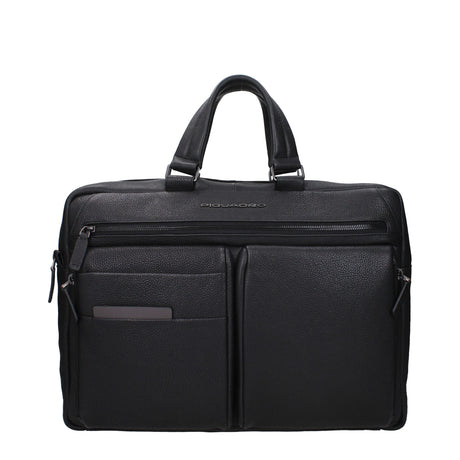 Piquadro Black Leather Business And Laptop Bags