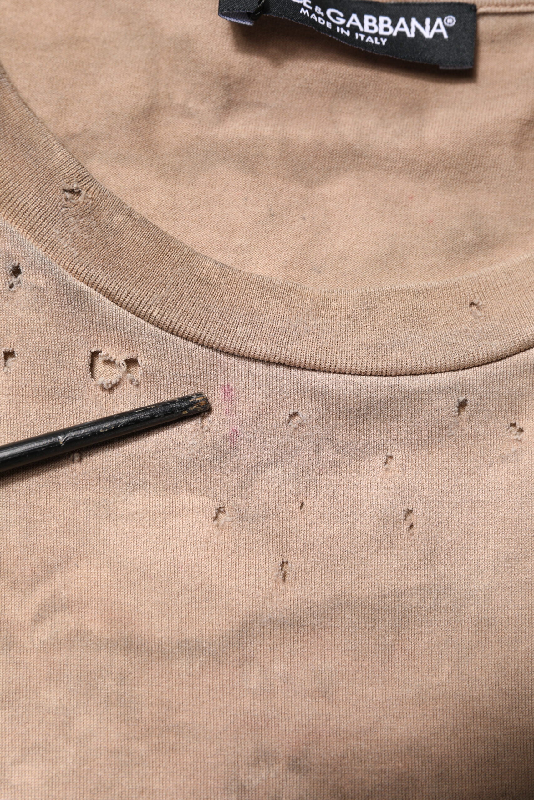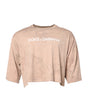Dolce & Gabbana Beige Tie Dye Logo Print Cropped T-shirt
