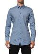 Dolce & Gabbana Blue Cotton Collared GOLD Formal Dress Shirt