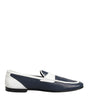 Dolce & Gabbana White Blue Leather Slip On Loafers Men Formal Shoes