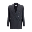 Saint Laurent’s wool double-breasted Blazer expresses bold elegance and a contemporary silhouette. Made of certified wool, it features a six-button closure, peaked lapels and an elongated, oversized fit for a structured, characterful look typical of the house’s aesthetic.