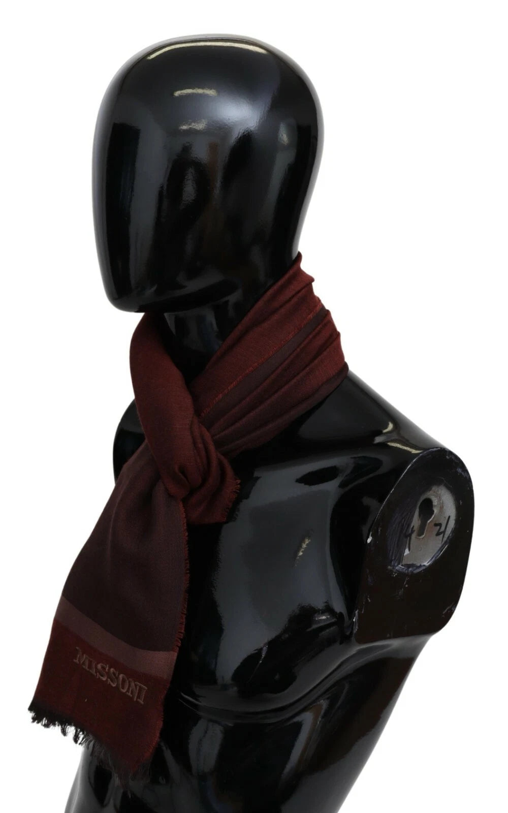 M Missoni Maroon Striped Wool Blend Unisex Wrap Fringes Scarf