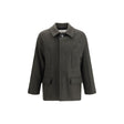 The oversized wool Gabardine Peacoat by Ami Paris embodies bold, contemporary elegance. Crafted from felted wool gabardine, it features a high buttoned collar and concealed single-breasted closure for a clean, refined silhouette. Horn buttons and visible topstitching reflect meticulous craftsmanship, while multiple pockets and raw-cut edges enhance its character. A semi-lined piece that balances structure and softness with effortless sophistication.