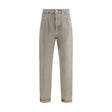 The Iconic Fit five-pocket Trousers in garment-dyed denim by Brunello Cucinelli combine versatility and sophistication through refined craftsmanship. Made from pure cotton, the denim undergoes a garment-dyeing process that enhances the fabric with subtle, irregular shades, creating a unique finish. The Iconic Fit features a slightly high waist and a straight leg for a balanced, relaxed silhouette. Details include metal button fastening, front pockets with coin pocket, patch back pockets, and a plain hem.