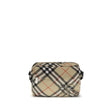 The small Check Shoulder Bag by Burberry stands out for its compact and functional design, embellished with the iconic Check pattern. Featuring an adjustable ribbon shoulder strap, it offers practical and comfortable portability, while the zippered closure and exterior zippered pocket provide organization and security. The Equestrian Knight Design applique on the front completes the design with a distinctive and recognizable touch.