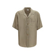 The silk satin Shirt by Saint Laurent with geometric pattern features a distinctive design, with a micro starburst pattern of squares and diamonds that enriches its texture. The short sleeves and boxy fit offer modern comfort, while the French collar and patch pocket on the chest add elegance and functionality. The button closure at the front and straight hem complete the look, perfect for those seeking a refined and contemporary style.