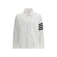 The cotton Shirt by Thom Browne is a garment that blends classic elegance with distinctive details. With a classic collar and front button closure, it features a clean, refined design. The iconic horizontal bands on one sleeve add a touch of originality, while the logo patch on the front and the patch pocket complete the look with a distinctive brand detail. Perfect for those seeking a sophisticated style but with a modern accent.