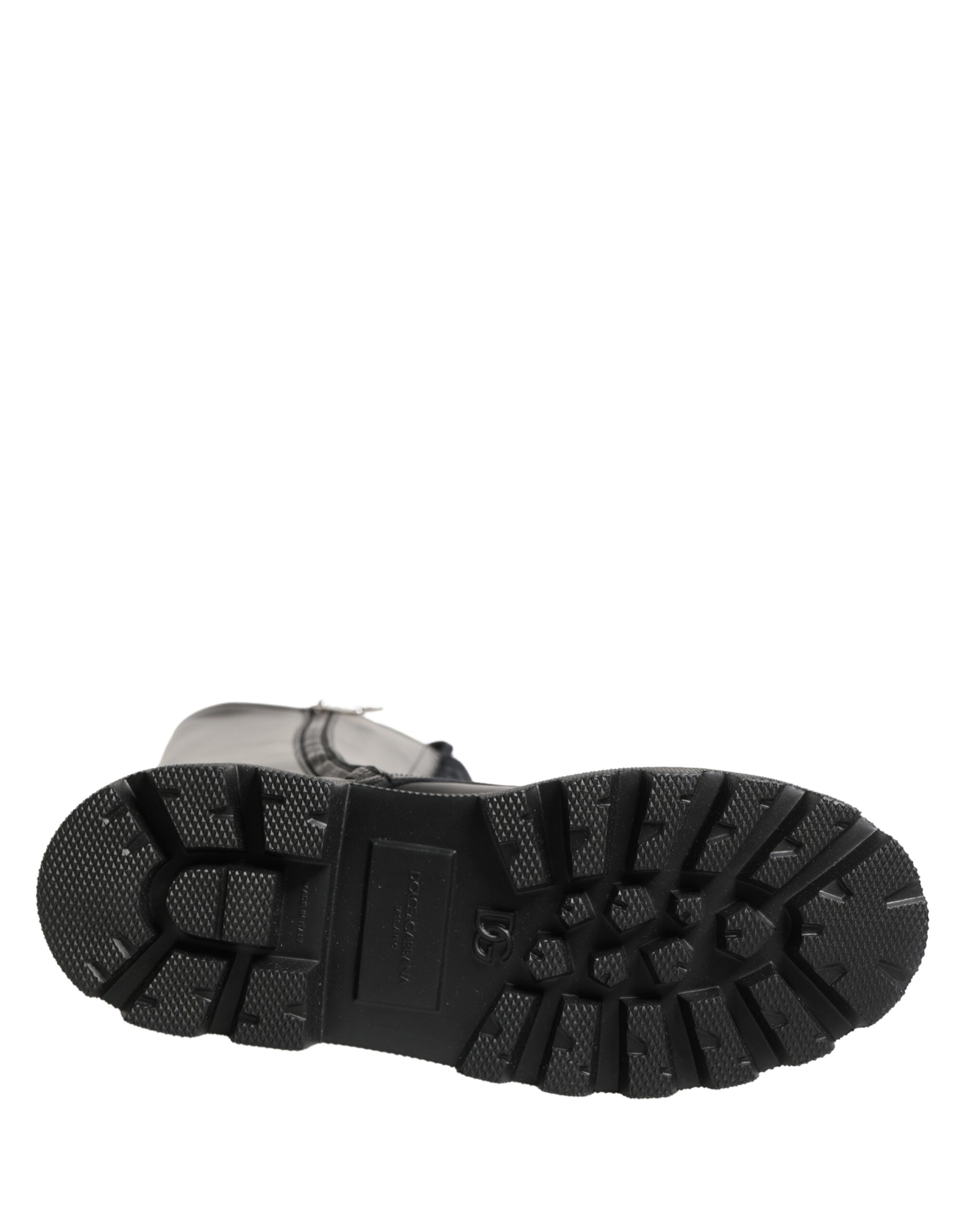 Absolutely stunning, 100% Authentic, brand new with tags Dolce & Gabbana knee-high boots. Crafted from premium spazzolato matte leather in classic black, these boots feature a bold lace-up front combined with a rugged lug rubber sole for enhanced grip and durability. Designed in the “Trek Solid” style, they offer a striking balance of utilitarian edge and refined Italian luxury, making them a standout choice for modern wardrobes.