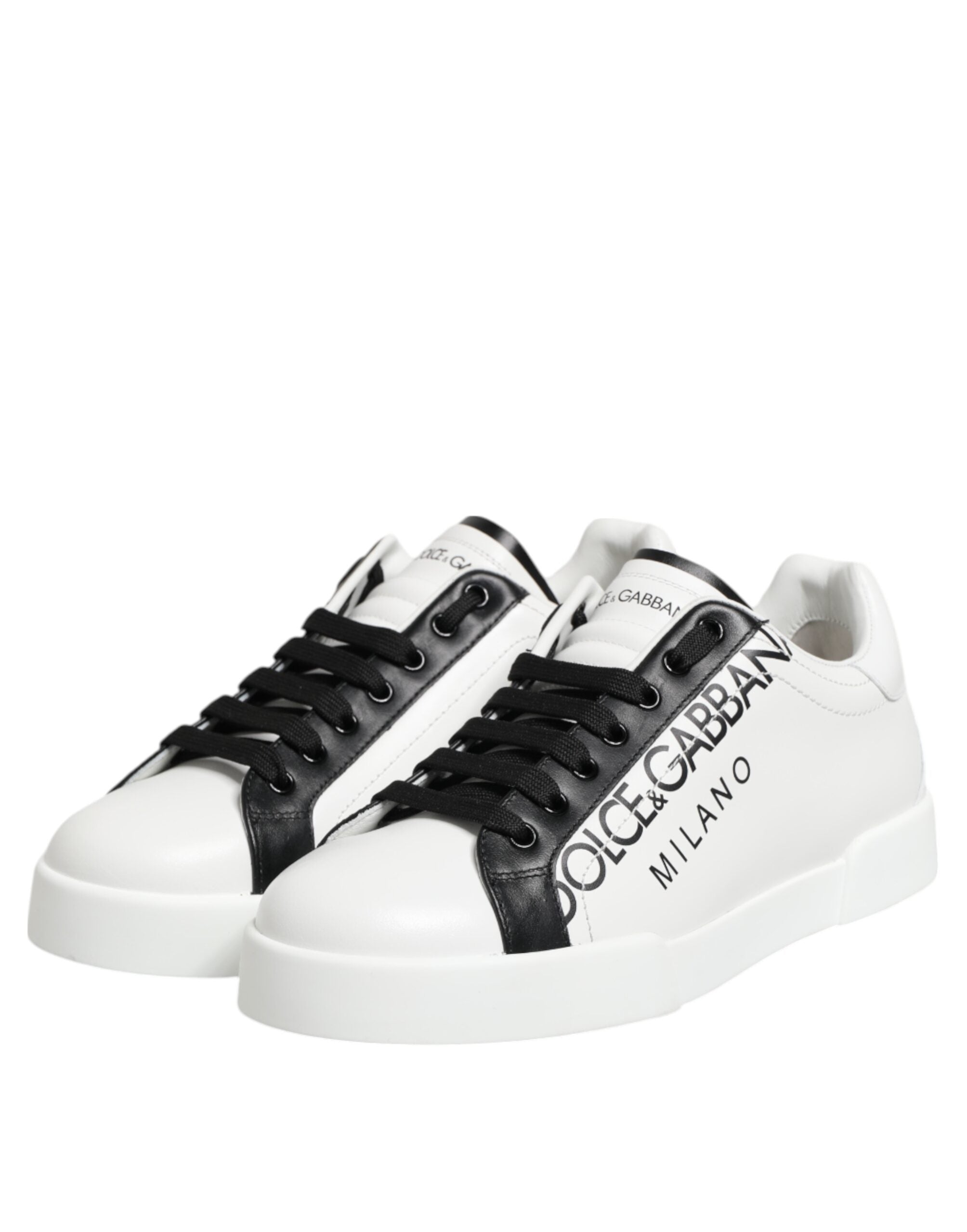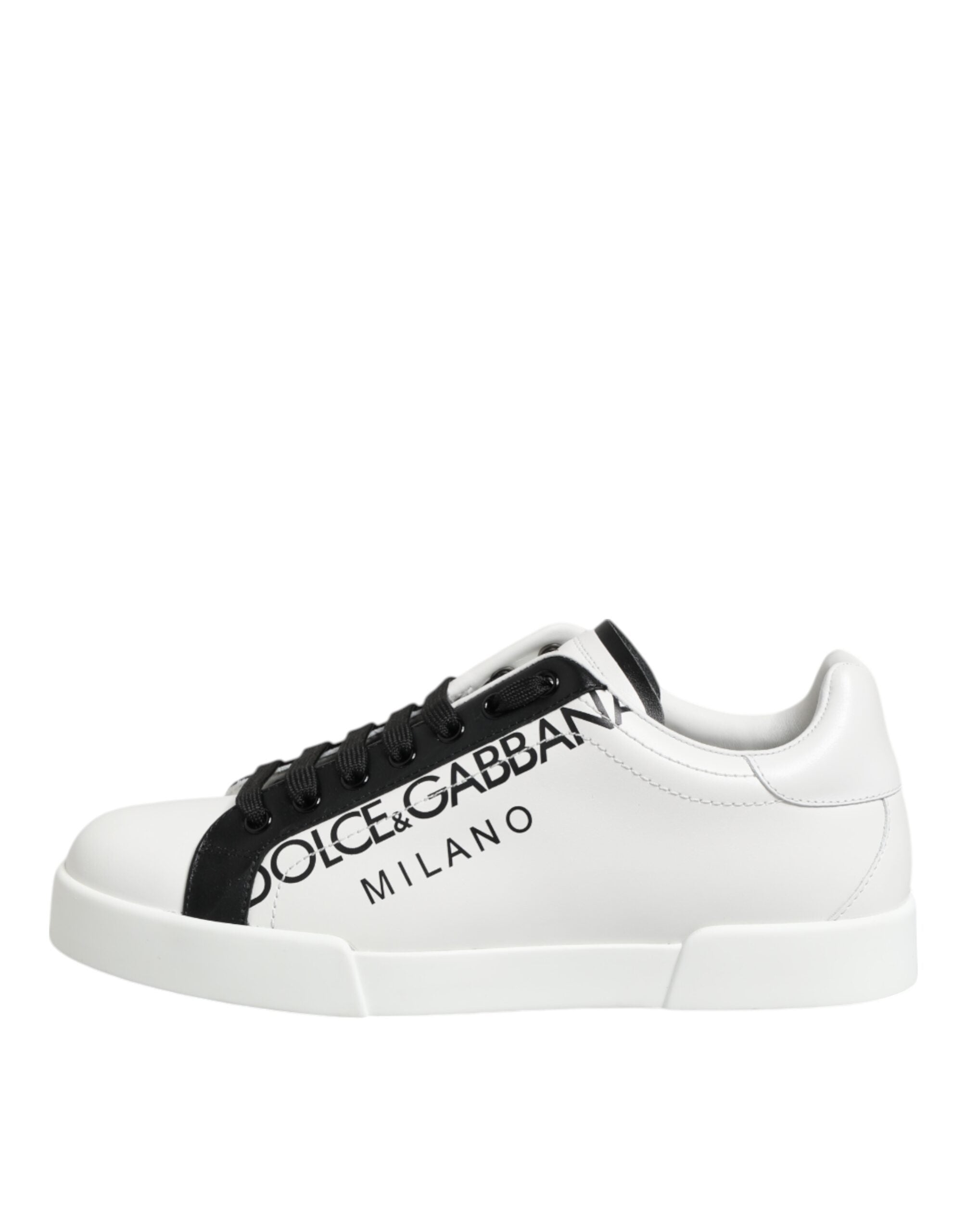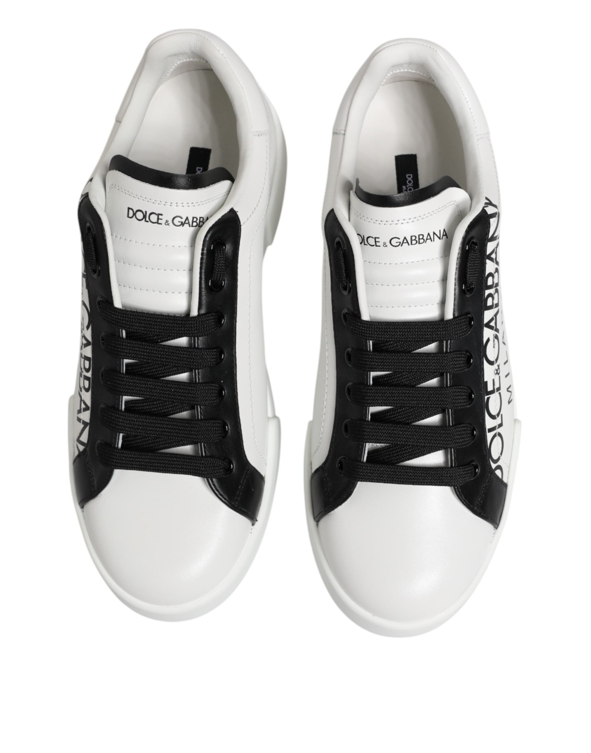Dolce & Gabbana Black White Leather Portofino Sneaker Shoes