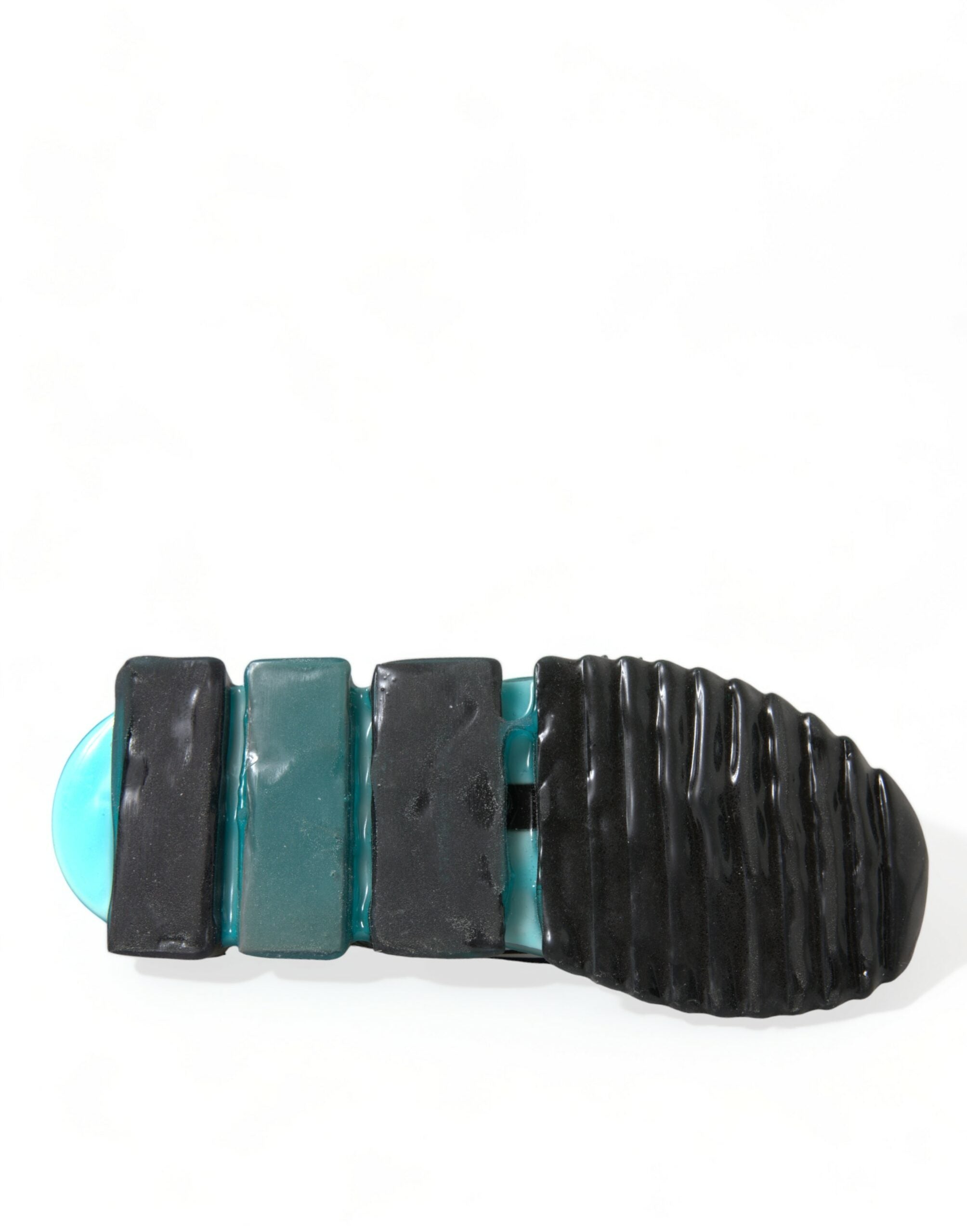 Gorgeous brand new with tags, 100% Authentic Dolce & Gabbana white and light blue ‘Sorrento’ sneakers. Decorated with a logo print in white and black. Fabric pull strap sewn-in at the back. Black decorative rubber sole.