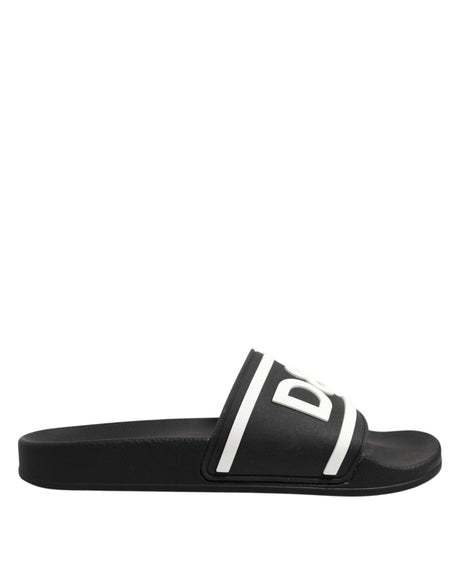 Dolce & Gabbana Black White Sandals Rubber Men Beachwear Shoes