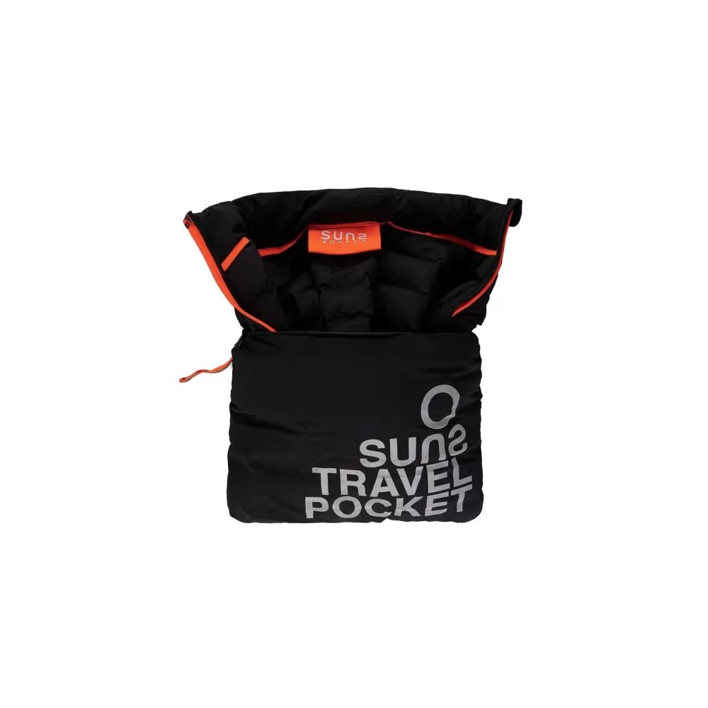 Suns vest in technical fabric, regular quilted in solid color with high collar, waterproof ripstop workmanship, side pockets with closure and small logo print applied on the chest, front zip closure and garment that can be folded away into its own travel pocket.