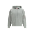 The cotton Hoodie by Thom Browne is a casual-chic garment with an iconic and refined design. The drawstring hood offers an adjustable fit, while the ribbed hem and cuffs ensure a comfortable and secure fit. The iconic horizontal stripes on the left arm and the signature patch on the front add a distinctive and recognizable touch of the brand. A must-have for those looking for a sporty yet sophisticated look with a touch of luxury.