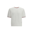 The short-sleeved Sweatshirt by Thom Browne offers a modern and sophisticated look. Featuring a ribbed crew neck and ribbed hem, it guarantees a comfortable and refined fit. The logo patch on the front adds a distinctive touch to the garment, while the cuffs with horizontal bands complete the design with an exclusive detail. A minimalist and classy interpretation for a casual and refined look.