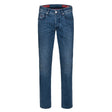 Tramarossa five-pocket denim with a regular slim fit, soft on the leg and bottom, super-stretch denim, matt nickel articulated button with knurled surface and embossed logo, customised Tramarossa inner lining, suede back label with heat-stamped logo