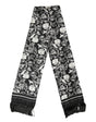 Dolce & Gabbana Black White Silk Floral Print Fringe 136cm X 15.5cm Scarf