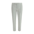 The Melbourne Pants by Brioni are a sleek, contemporary design with a cigarette cut that gives a slim silhouette. The front closure features a hook and zipper, while the elasticated waistband at the back ensures optimal comfort. The two side welt pockets and two buttoned back pockets add practicality and a touch of sophistication. With a high waist, these pants offer a sleek, defined fit.
