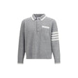 The knitted polo Shirt by Thom Browne delivers relaxed elegance enhanced by iconic detailing. Crafted from a refined wool and silk blend, it features a textured knit that adds depth and character to the design. The long-sleeved silhouette is finished with the signature four-bar stripe on the sleeve, while a chest pocket and button fastening balance functionality with style. A ribbed hem completes the piece with a clean and structured finish.