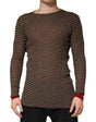 Daniele Alessandrini Brown Black Stripes Wool Crew Neck Pullover Sweater