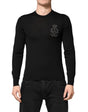 Dolce & Gabbana Black Crest Wool Crew Neck Pullover Sweater