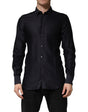 Dolce & Gabbana Black Dotted Cotton Collared GOLD Dress Shirt