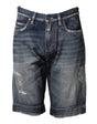 Dolce & Gabbana Blue Cotton Distressed Denim Bermuda Shorts