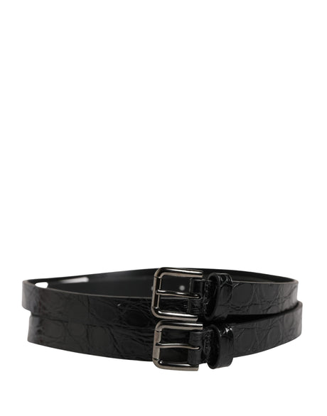 Dolce & Gabbana Black Double Strap Leather Silver Buckle Belt