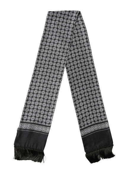 Dolce & Gabbana Black Silk Geometric Fringe Wrap Foulard 136cm X 15cm Scarf