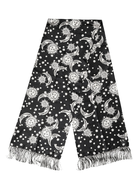 Dolce & Gabbana Black Silk Sun Moon Star Fringe Foulard 178cm X 33cm Scarf