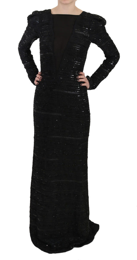 John Richmond Black Silk Full Length Sequined Gown Dress