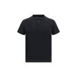 The mouldable cotton T-shirt by Prada reimagines a wardrobe staple with a dynamic, movement-inspired design. Its classic crew-neck silhouette is enhanced by mouldable details at the neckline, sleeves, and hem, allowing the piece to be shaped and worn with versatility. Short sleeves and a straight hem keep the look clean and minimal, while the tone-on-tone conceptual triangle logo and tailoring label add a refined yet contemporary signature.