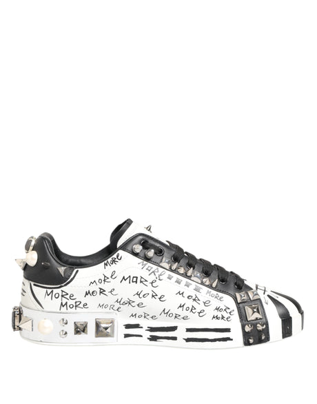 Dolce & Gabbana White Studded Printed Low Top Sneakers Shoes