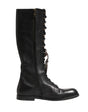 Absolutely stunning, 100% Authentic, brand new with tags Dolce & Gabbana Re-Edition knee-high lace-up boots. Crafted from premium smooth black leather, these statement boots feature a classic combat-inspired silhouette with a full lace-up front and refined round toe. Finished with a durable low-profile sole, they reflect Dolce & Gabbana’s signature blend of timeless design, rugged elegance, and Italian craftsmanship.