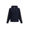 The Check Trim Cotton Zip Hoodie by Burberry is crafted from lightweight loop-back cotton, featuring Archive Beige Check taping along the sleeves and an embroidered Equestrian Knight Design at the chest. A two-way zip closure, drawcord hood, pouch pockets, and rib-knit trims complete this refined take on a classic casual piece.