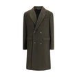 The double-breasted Coat by Cruna embodies timeless tailoring with a refined silhouette. Featuring classic lapels and front pockets, the design is completed with buttoned cuffs and a back martingale – a belt-like detail with two buttons – that enhances the coat’s structure and adds a subtle touch of sophistication.