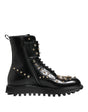 Dolce & Gabbana Black Studded Lace Up Mid Calf Boots Shoes