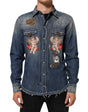 Dolce & Gabbana Blue Angel Patch Denim Buttoned Down Men Shirt